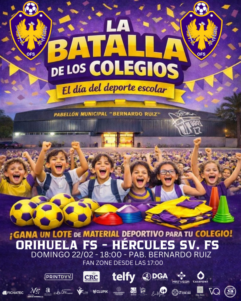 Se trata de un evento que se celebrará con motivo del Orihuela FS – Hércules SV. FS de 3ª División Nacional de Fútbol Sala, un partido oficial del primer equipo en el Pabellón Municipal Bernardo Ruiz el próximo Domingo 22 de Febrero, 18:00, cuyo objetivo es fomentar el deporte escolar, los valores del compañerismo y el vínculo entre los centros educativos y el deporte local.