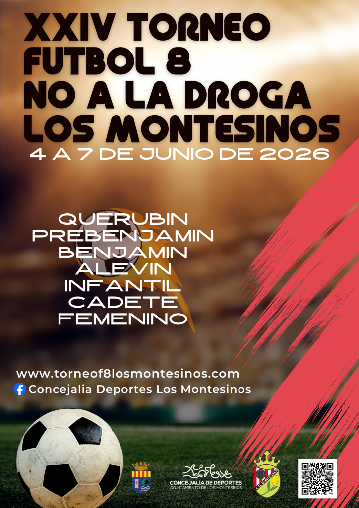 Los Montesinos, 22 de abril de 2026 | El Ayuntamiento de Los Montesinos ha informado de la celebración de la XXIV edición del Torneo de Fútbol 8 “No a la Droga”, que tendrá lugar los próximos días 4, 5, 6 y 7 de junio, consolidándose un año más como una de las citas deportivas más relevantes de la comarca de la Vega Baja y provincias limítrofes.